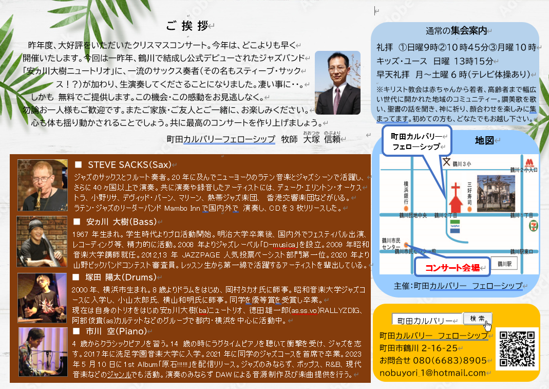 ●11月23日(祝、木)午前10時「クリスマス・ファミリージャズコンサート」を開催されました。